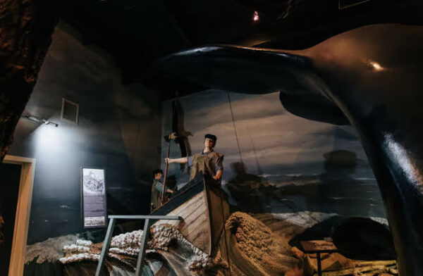 We met our docent – a proud Māori woman whose name I recorded as Urangi – who shared not only her knowledge about the museum but much of her personal story as well. She led us into the small theater with its boat like design where we started our experience with a 15-minute film that presented the history of the area through a lens of Pākehā and Māori interactions.