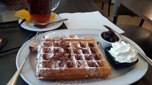 At the end of yesterday’s post, I was setting out to find a Belgian Waffle. I’d written the name of two places suggested by an internet search and decided to march in their general direction and, without further use of any map app, settle into whichever I spotted first. (This isn’t entirely true. I deliberately routed myself away from House of Waffles hoping I’d find Wafelhuis Van Hecke without too much difficulty.)