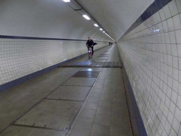 Built in 1933, the tunnel connects the older right bank of the Scheldt River with the city’s newer left bank suburbs and is exclusively for pedestrians and cyclists. Among the most noteworthy features are the wooden escalators that descend more than 30 meters to the river bottom. Wooden escalators were rather novel at the time and that is even more so the case today.