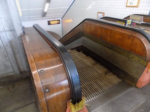I decided to let Google Maps guide me to the tunnel and had it turn me into something of a fool because it wanted to guide me, I think, down the escalators and into the tunnel itself. It never announced that I’d reached the destination and I circled the entrance more times than I care to count or admit before realizing it was the building in front of me. In my frustration, I neglected to take a picture of the entrance. Fortunately, we have Wikimedia Commons. (In my defense, I ask you to note that the building is unmarked.)