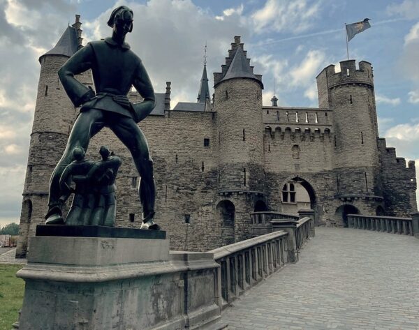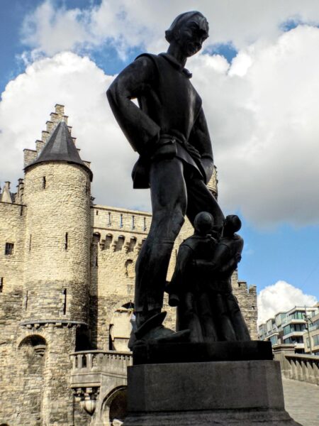 of Lange Wapper. Antwerp installed it in front of Het Steen castle.