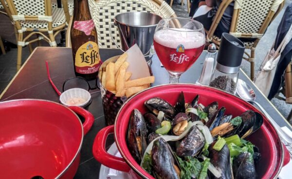 Still finding my thoughts a bit cattywampus from the time change, I decided to return to the same restaurant where I’d supped Monday night because it was quite close to the hotel and the moules-frites with a Leffe Ruby had been quite good.