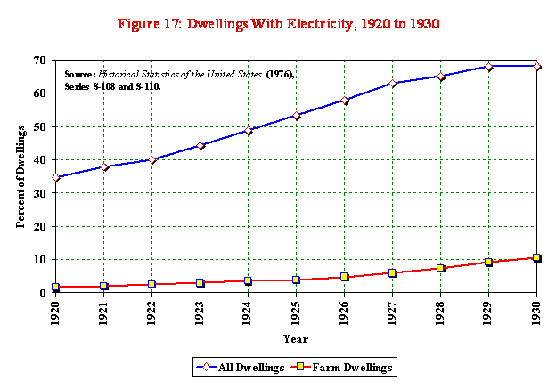 Reflecting this shift from rural to urban population, the decade saw the number of households with electricity nearly double although farm households lagged far behind the country’s urban areas.