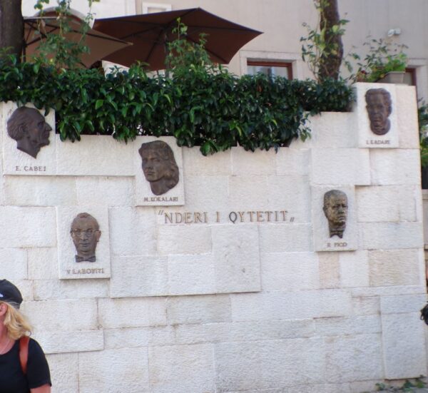 When the last of our vans parked at Çerçiz Topulli Square, that seemed to be a central spot from which to begin exploring the city, our guide, who seemed to have lost interest in guiding the group at this point, mustered us together in front of the Nderi i Qytetit or Honor of the City Monument.