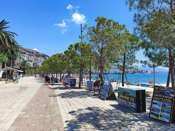 There’s a wide promenade along the shore in Sarandë and it’s dotted with hawkers selling services to tourists.