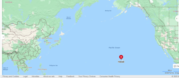 But each of the Hawaiian Islands were bubbling up from the seafloor each slowly accumulating layer upon layer of magma until it could, at last, break the ocean’s surface. Let’s zoom out a bit an let this Bing maps view show us how isolated Hawaii is from any major landmass.