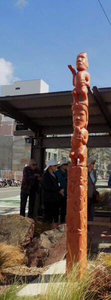 (Since I can sense your eyes beginning to glaze over, feast your eyes on this powhenua – or carved post – that we passed on our walk.)