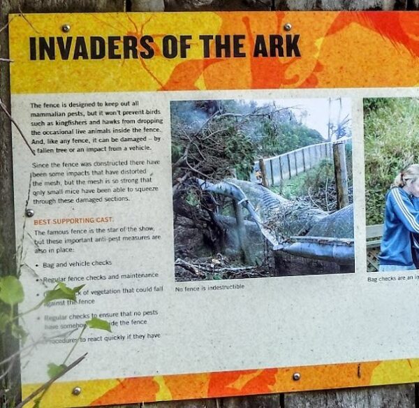 According to the sign in the photo above, the only mammalian predators that have managed to find there way into the sanctuary have been mice that squeezed through fence damage and occasionally a live animal dropped by an avian predator.