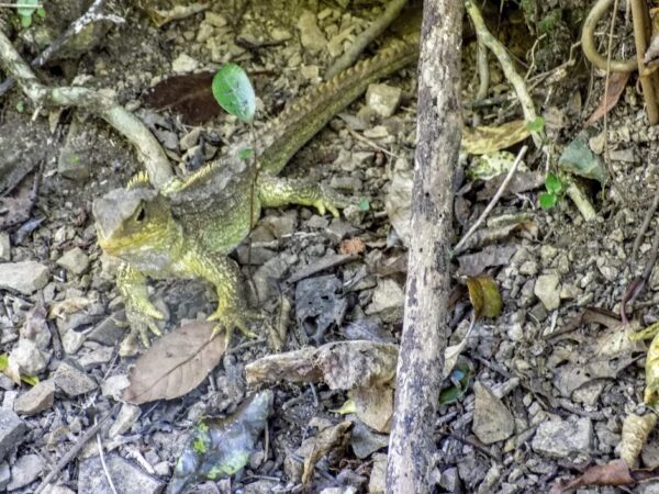 I’ll note two more elements of our time in Te Māra a Tāne. The first is our encounter with a tuatara – Aotearoa’s largest reptile. You need have no concern. Unlike the saltwater crocodiles of Australia that can grow to as much as seven meters and weigh 1,000kg, tuatara rarely grow any larger than 800cm and their weight tops out at about 1,500 grams.