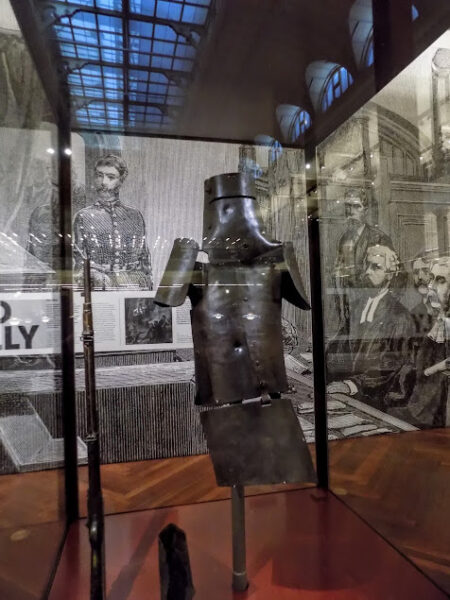 I started with a trip back to the Victoria State Library to get a glimpse of Ned Kelly’s last armor. Ned Kelly was a notorious outlaw who is, for some hard to fathom reason, (at least for me) one of Australia’s great folk heroes. He seems to be respected in a way that some of the outlaws if the American west are not. They might be famous but they’re not admired. Still, I was there so I thought I should indulge in this bit of Australian history.