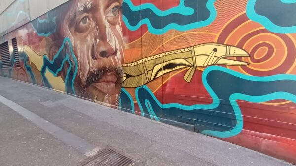 Exiting there, I spotted some interesting additional street art with a clear Aboriginal theme (if not in a clear aboriginal style),
