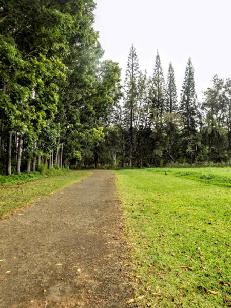 In addition to being unconquered and the Garden Isle, Kauai might hold the title as the “Hiking Isle” at least from my perspective because so many of the suggested activities included hiking. I decided my first hike should be an easy one so I was off to Wai Koa and what alltrails.com describes as “a moderately challenging route” that’s a round trip of three-point-eight or four-point-five miles depending on the source. All Trails shows a total of 826 feet in elevation change. Here’s the slightly deceptive entrance to the trail.