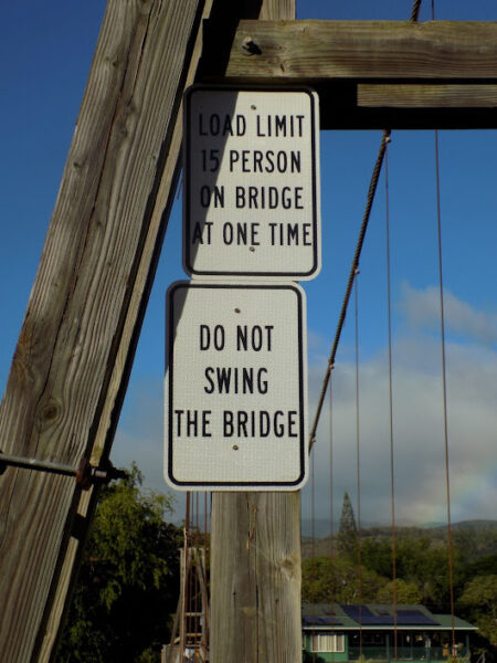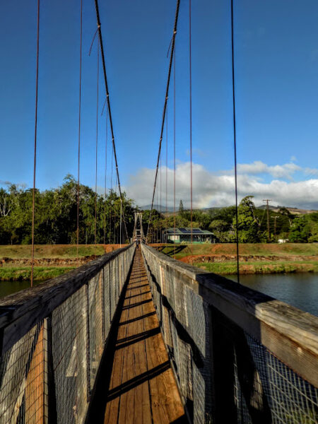 Finally, there’s the famous Swinging Bridge. Built in 1911 as a pedestrian suspension bridge to allow people – especially plantation workers – to cross the Hanapepe River, it has become not only a local landmark