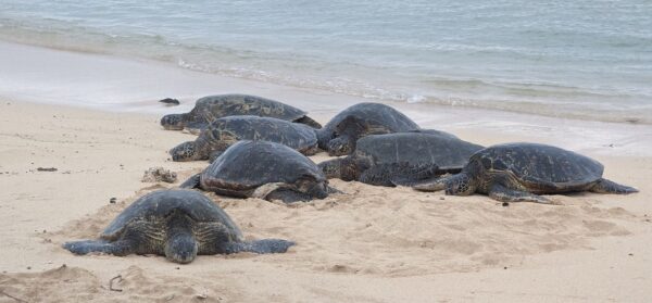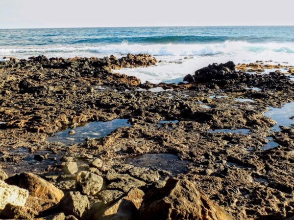 Kauai is well-known for its population of green sea-turtles called honu and the opportunity to view turtles is one I can’t pass up. The bus driver who took me from the airport to the rental car counter told me about a place called Whaler’s Cove but I’d heard that at sunset the turtles come onto Poipu beach in great numbers. I arrived a bit early and was able to wander around and look at this interesting beach